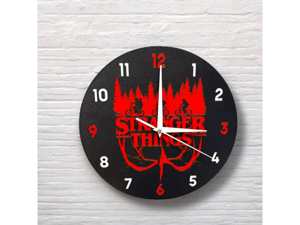 Hodiny Stranger Things – designové 3D tištěné hodiny z PLA (Ø 23 cm)